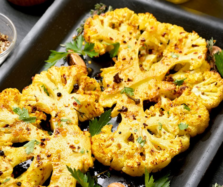 Filetes Asados de Coliflor con Salsa Cremosa de Aguacate y Cilantro