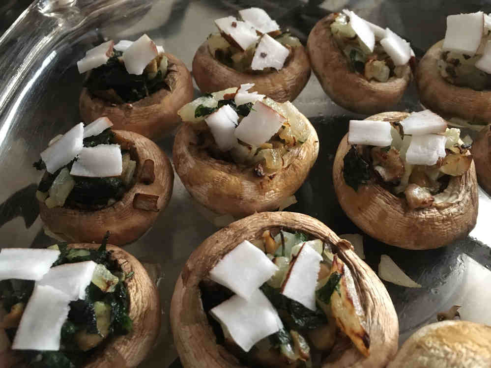 Ingredientes de los champiñones rellenos de cebolla y espinacas: